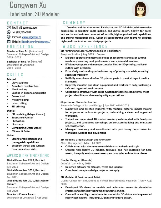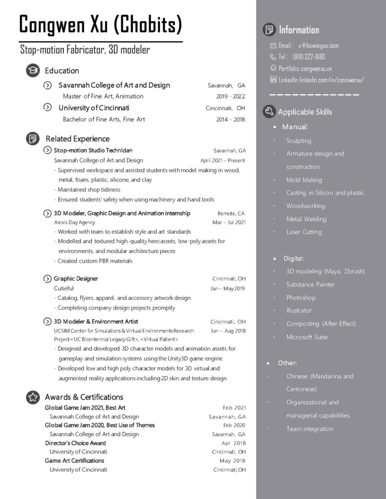 Received BFA in Fine Art in 2018, and MFA in Animation in 2023.